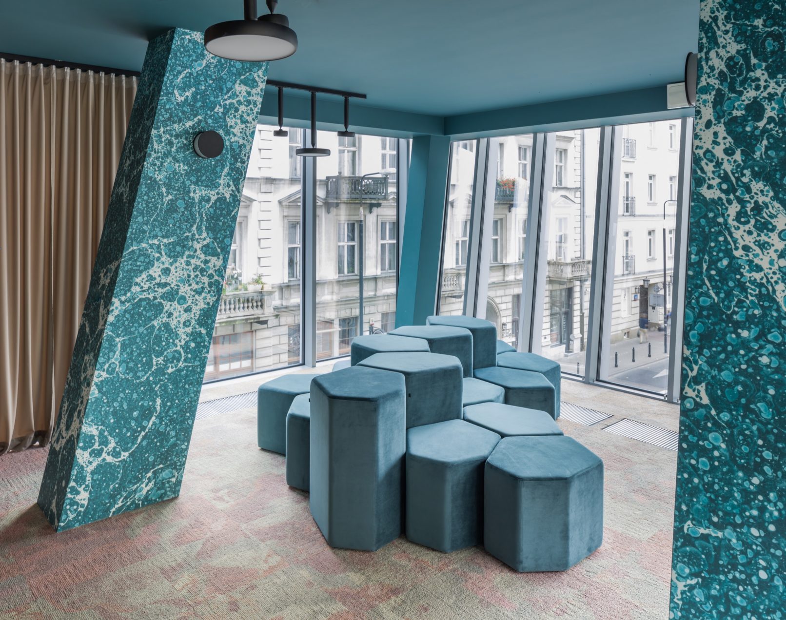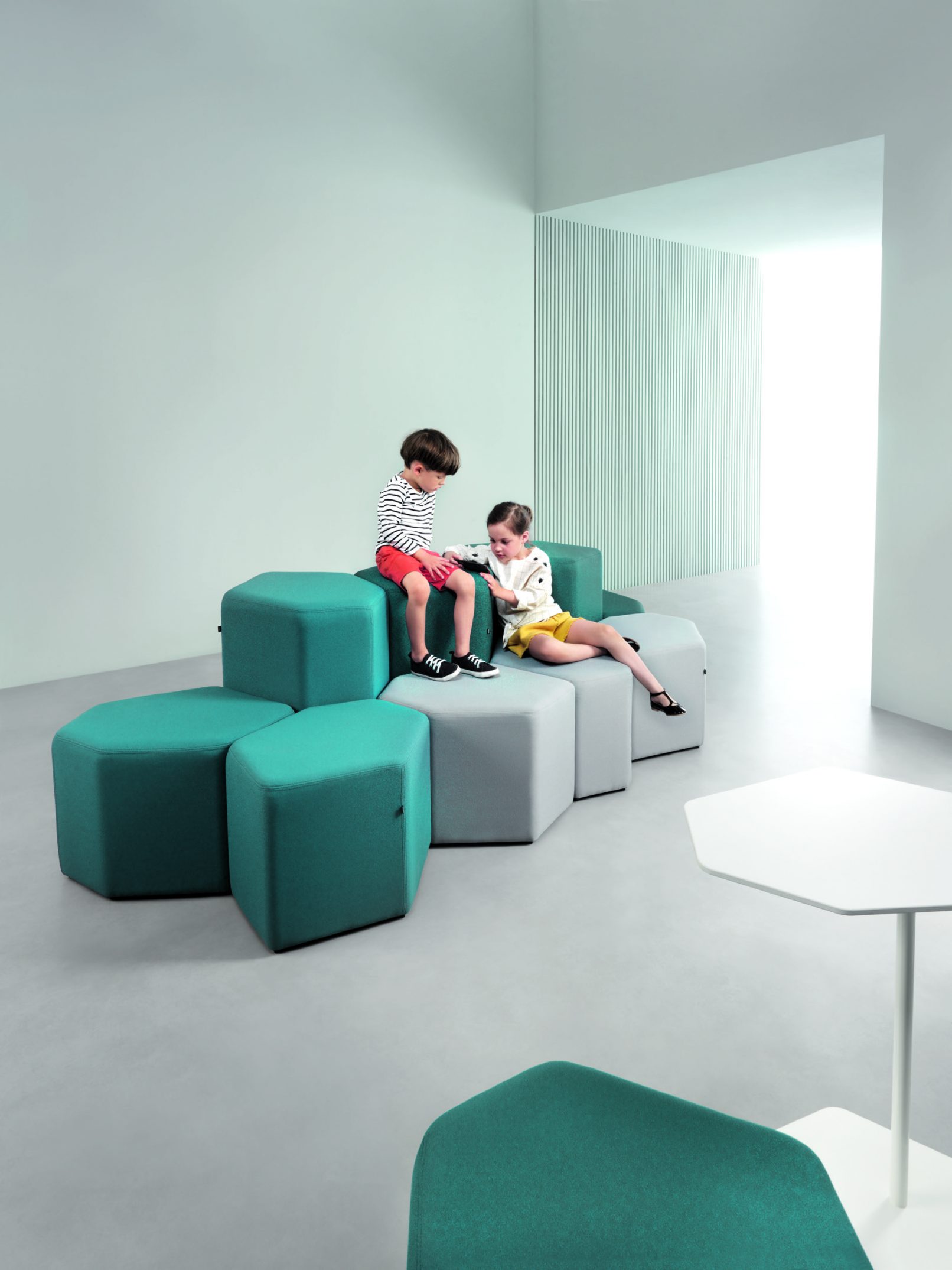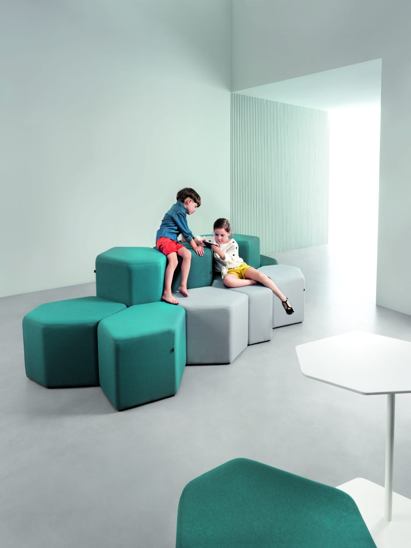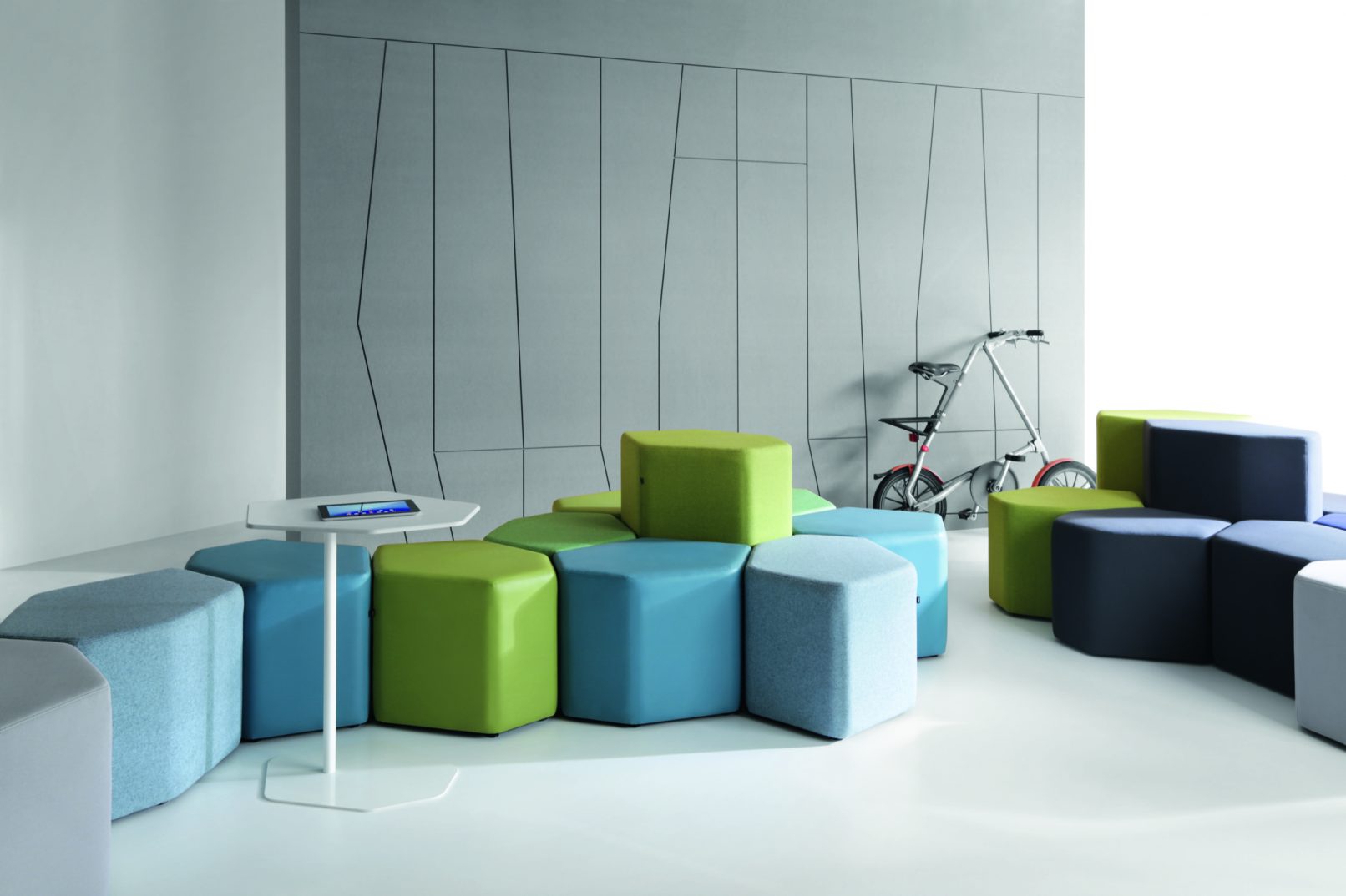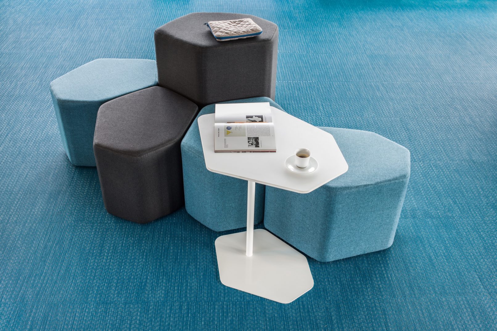 Nieregularny kształt zainspirowany heksagonalną formą kamieni irlandzkiej Grobli Olbrzyma. Pufy Bazalto wprowadzają klimat swobody i niezależności do każdego wnętrza. Poszczególne elementy mogą być dowolnie, samodzielnie zestawiane przez użytkowników. Siedziska przeznaczone do stref chillout i pomieszczeń socjalnych sprawdzą się także w poczekalniach, holach i miejscach spotkań. Dwie wysokości elementów pozwalają wyodrębnić siedzisko oraz oparcie, zapewniające komfort i prywatność. Kolekcję kolorowych puf funkcjonalnie i stylistycznie uzupełnia stolik. Bazalto to mebel uwzględniający zabawę formą i wyzwalający naturalną kreatywność w użytkowniku.