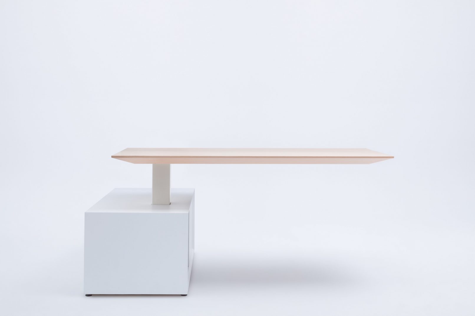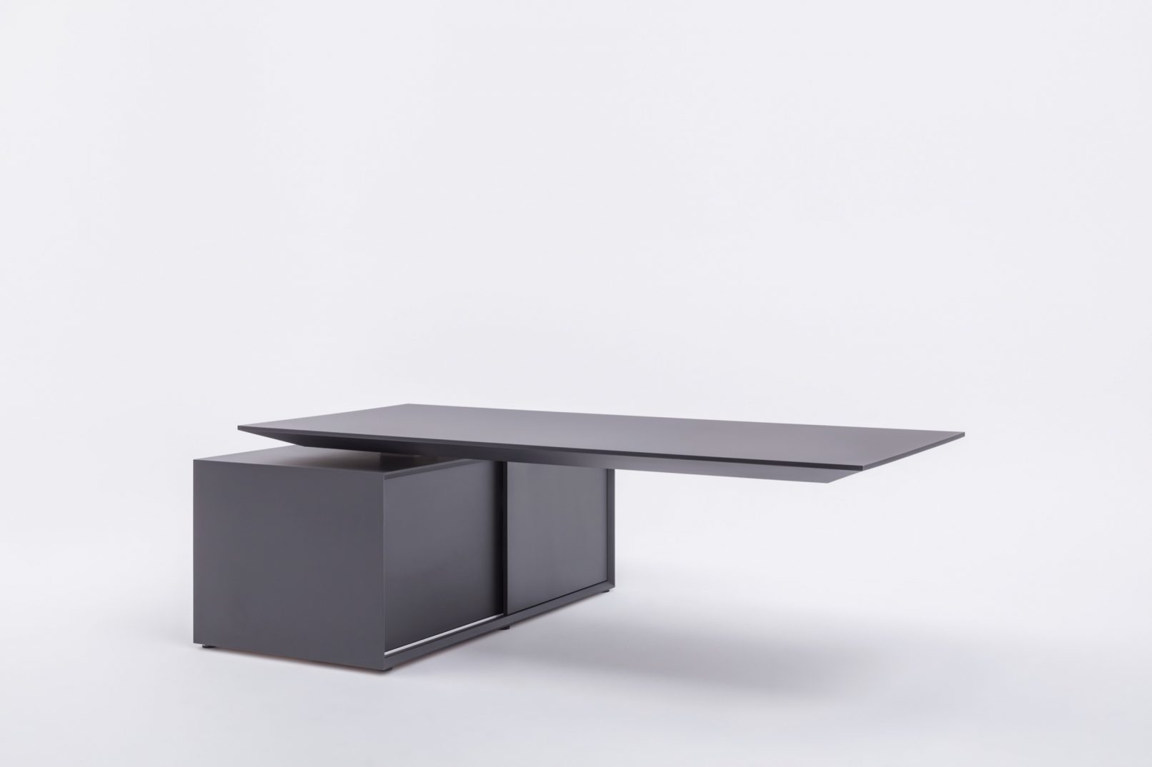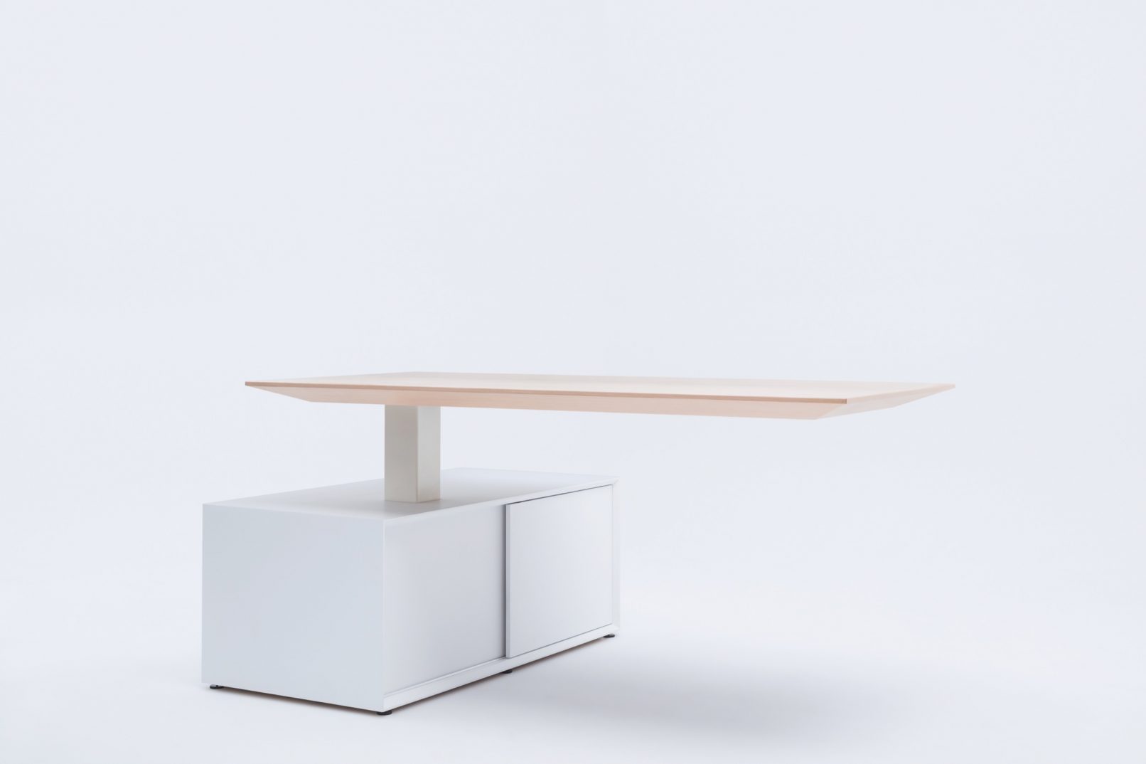 Na przekór grawitacji, a przy tym stabilnie i komfortowo! Gravity przenosi ideę biurka menadżerskiego na zupełnie nowy poziom. Minimalistyczna forma, inspirowana modernistyczną architekturą, zintegrowana została z technologią. Duży, osadzony na jednym punkcie podparcia blat i niewidoczna konstrukcja nośna przywodzi na myśl lewitującą powierzchnię. Regulowana elektrycznie wysokość blatu umożliwia ergonomiczną pracę i płynną zmianę pozycji z siedzącej na stojącą. W pełnej kolekcji, prócz biurka Gravity, znajdują się: stół konferencyjny z regulacją wysokości, stolik do kawy, regał i modułowy system przechowywania. To oryginalne biurko stanowi odważną propozycję adresowaną do nowoczesnych liderów.