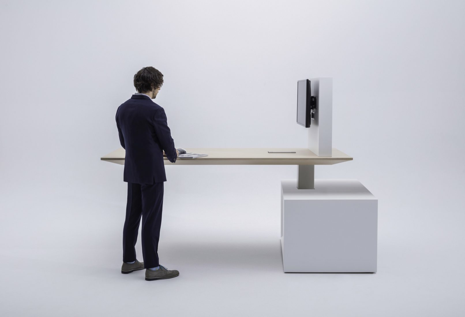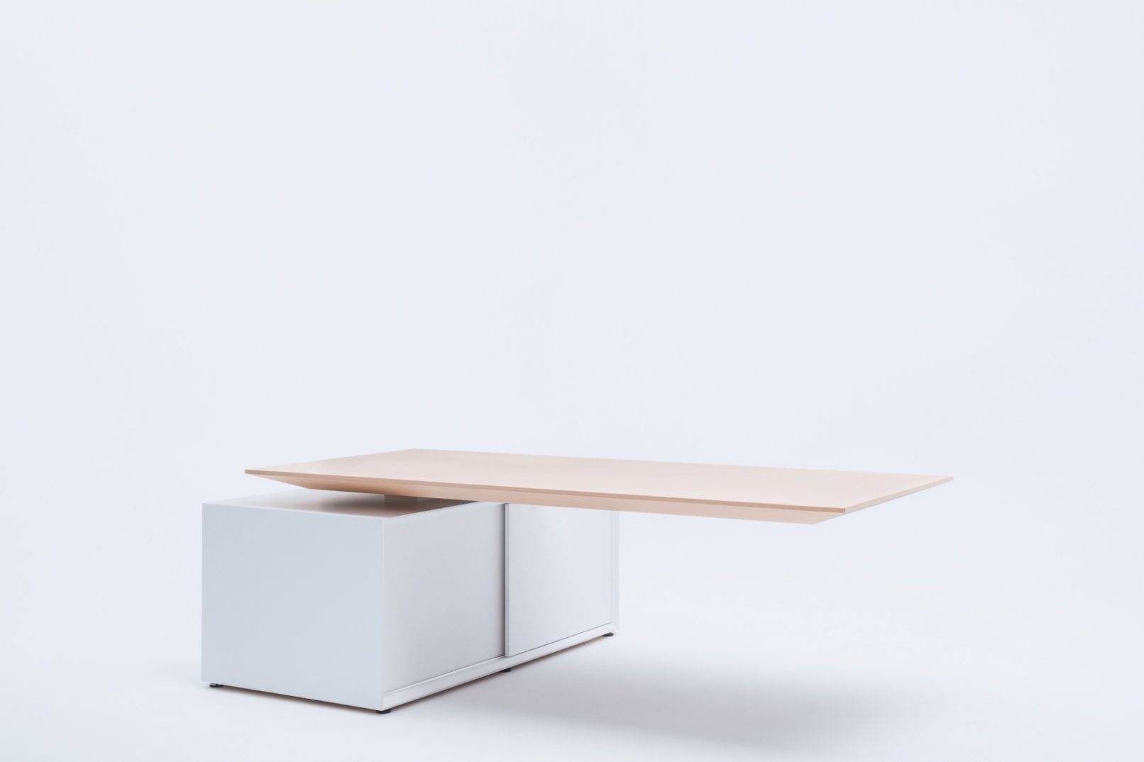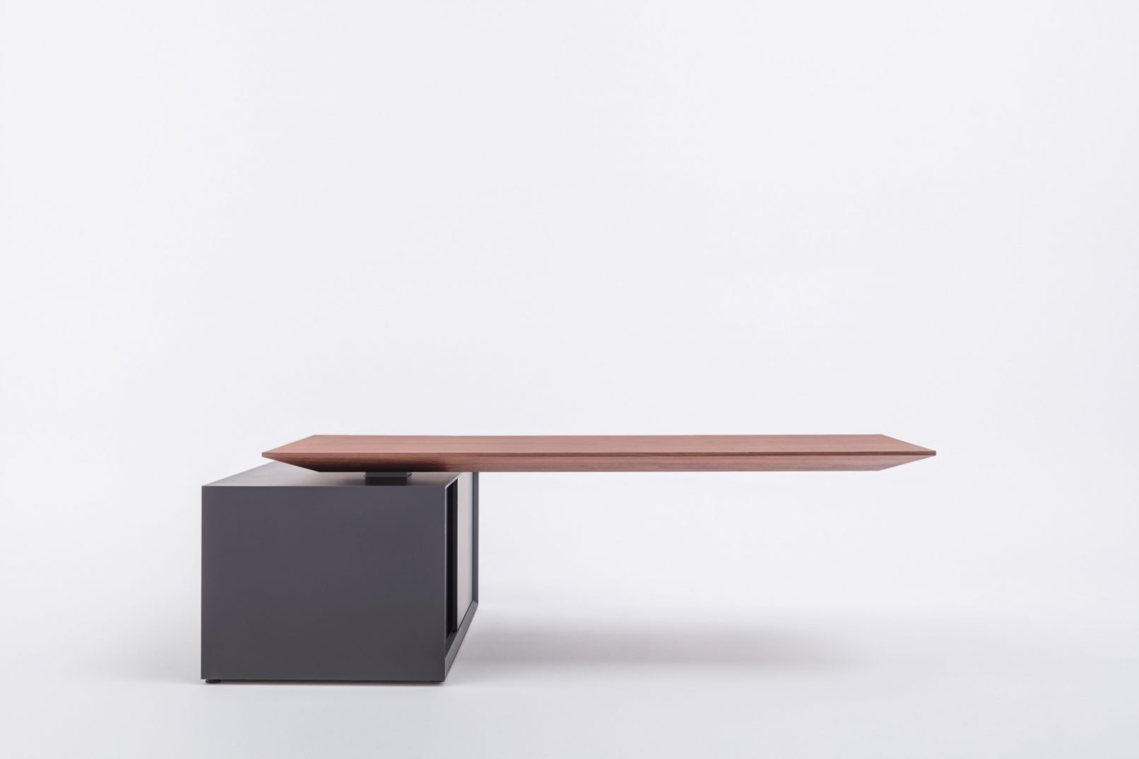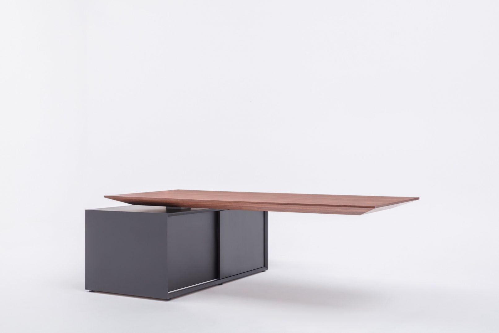 Na przekór grawitacji, a przy tym stabilnie i komfortowo! Gravity przenosi ideę biurka menadżerskiego na zupełnie nowy poziom. Minimalistyczna forma, inspirowana modernistyczną architekturą, zintegrowana została z technologią. Duży, osadzony na jednym punkcie podparcia blat i niewidoczna konstrukcja nośna przywodzi na myśl lewitującą powierzchnię. Regulowana elektrycznie wysokość blatu umożliwia ergonomiczną pracę i płynną zmianę pozycji z siedzącej na stojącą. W pełnej kolekcji, prócz biurka Gravity, znajdują się: stół konferencyjny z regulacją wysokości, stolik do kawy, regał i modułowy system przechowywania. To oryginalne biurko stanowi odważną propozycję adresowaną do nowoczesnych liderów.