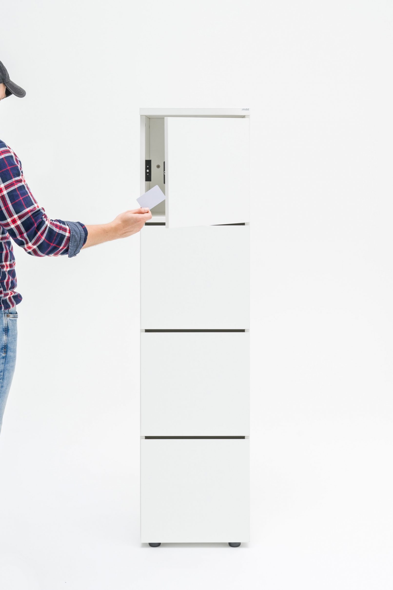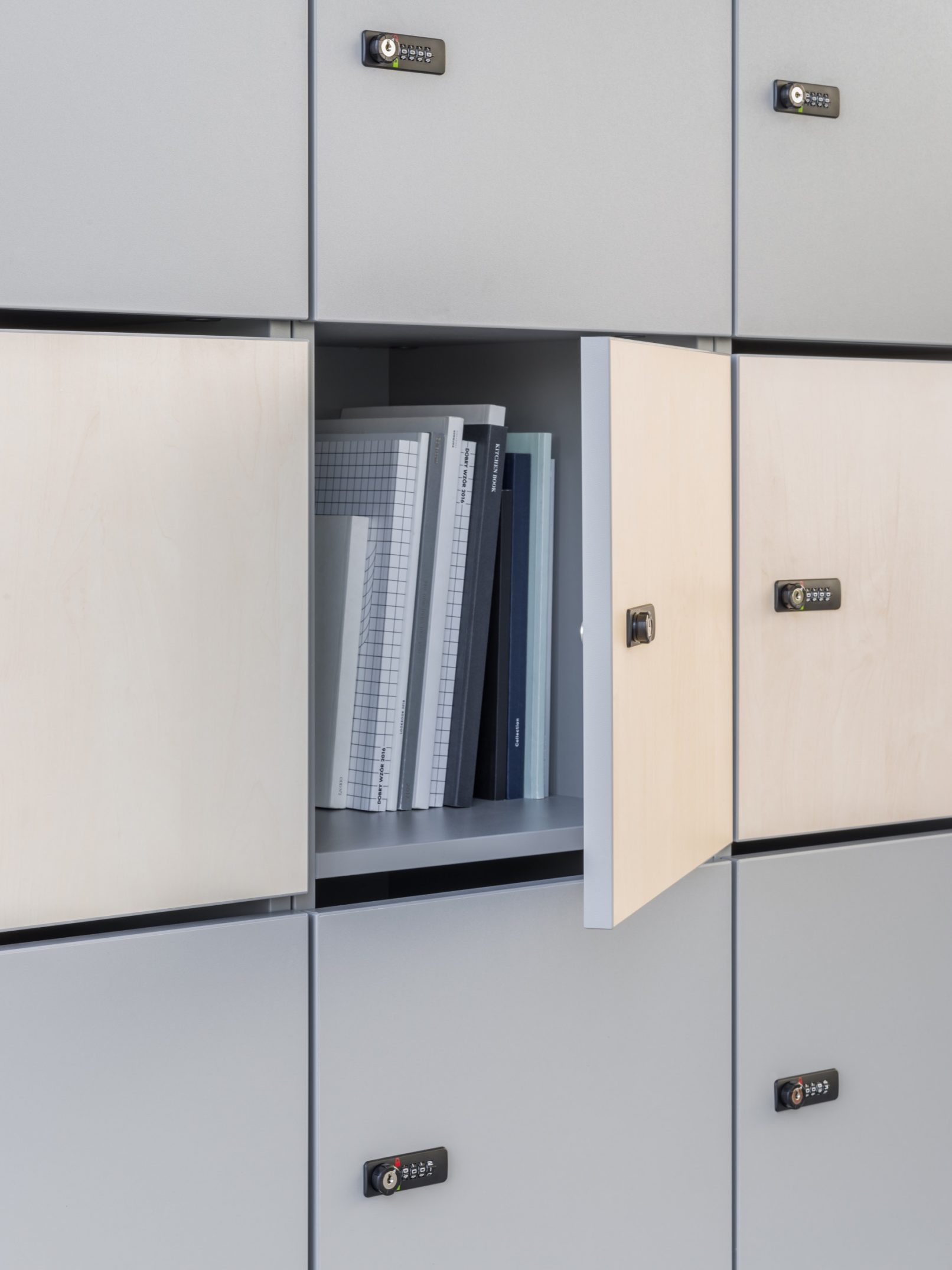 Szafki typu locker to przemyślany system organizacji w przestrzeni pracowniczej. Zaprojektowane zostały z myślą o wielofunkcyjności. Najczęściej służą przechowywaniu rzeczy osobistych w szatniach, pomieszczeniach socjalnych czy centrach co-workingowych, porządkowaniu dokumentów, lub zarządzaniu korespondencją przychodzącą. Prywatność gwarantuje zamek patentowy. Istnieje także możliwość instalacji wersji szyfrowej zamka, lub elektronicznej. Szafki skrytkowe to świetne rozwiązanie w biurach wykorzystujących model hot-desk, obszarach sanitarnych i sekretariatach.